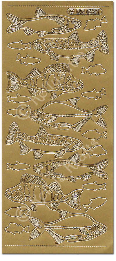 Various Fish, Gold Peel Off Stickers (1 sheet)