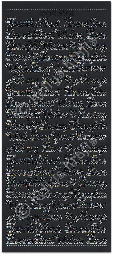 Romantic Loving Words, Black Peel Off Stickers (1 sheet)