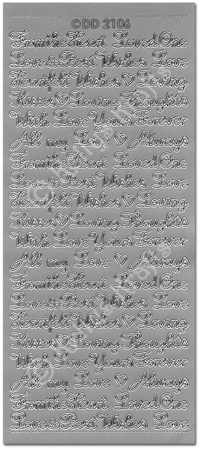 Romantic Loving Words, Silver Peel Off Stickers (1 sheet)