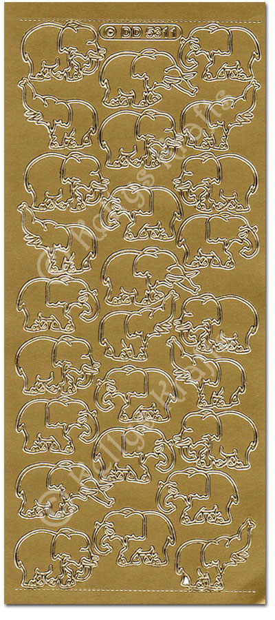 Elephants, Gold Peel Off Stickers (1 sheet)