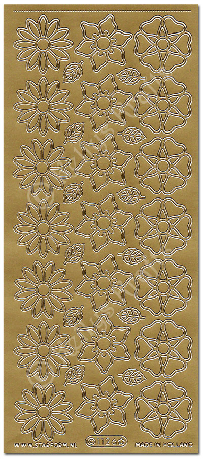 Flower/Daisy Heads & Leaves, Gold Peel Off Stickers (1 sheet)