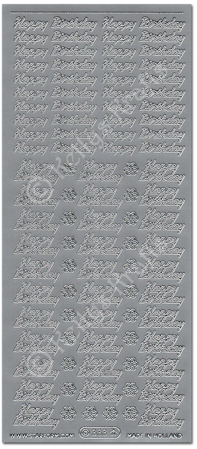 Happy Birthday, Silver Peel Off Stickers (1 sheet)