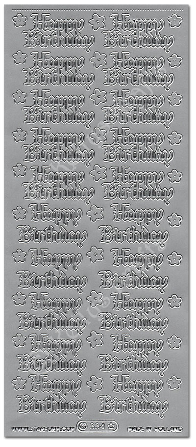 Happy Birthday, Silver Peel Off Stickers (1 sheet)