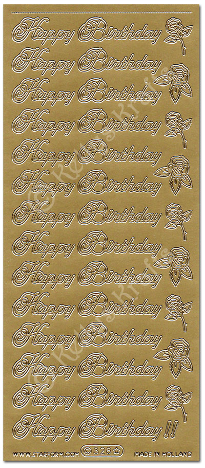 Happy Birthday, Gold Peel Off Stickers (1 sheet)