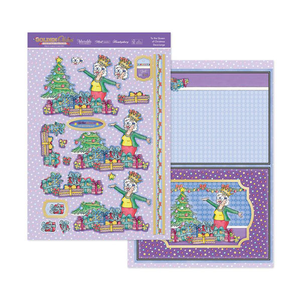 Taken from the "Golden Oldies Christmas Crackers" collection, this is a deco-large (large decoupage) card kit, featuring traditional Christmas iconography for a timeless look, celebrating the old age in a fun, loving and humorous style.