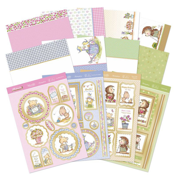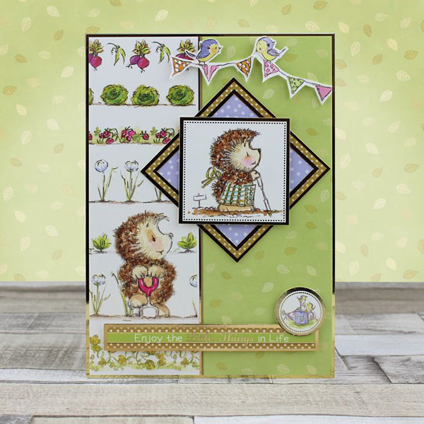 This cute papercraft kit features the most gorgeous illustrations of Ted, Hedgehog and friends having fun on the allotment! Beautiful imagery depicts Ted watering his carrots, with a mischievous bunny burrowing nearby, Hedgehog lovingly tending to his veg patch, and delightful birds decorating with beautiful bunting!