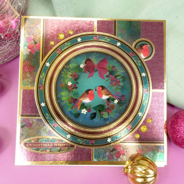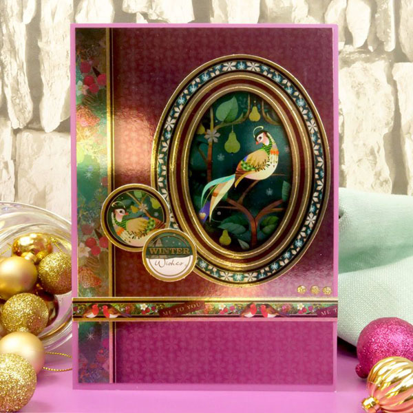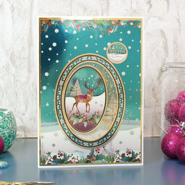 The sheet of Christmas card toppers contains icons, captions and sentiments, with stunning mirri magic finish all over, and gold edging.
