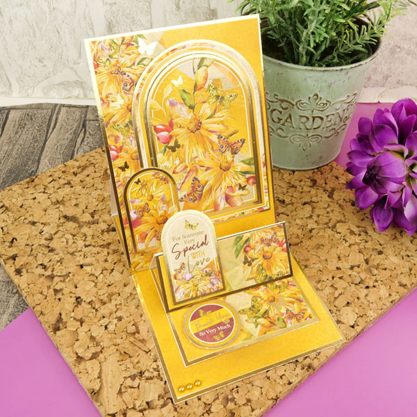 The sheet of card toppers contains icons, captions and sentiments, with stunning gold highlights.