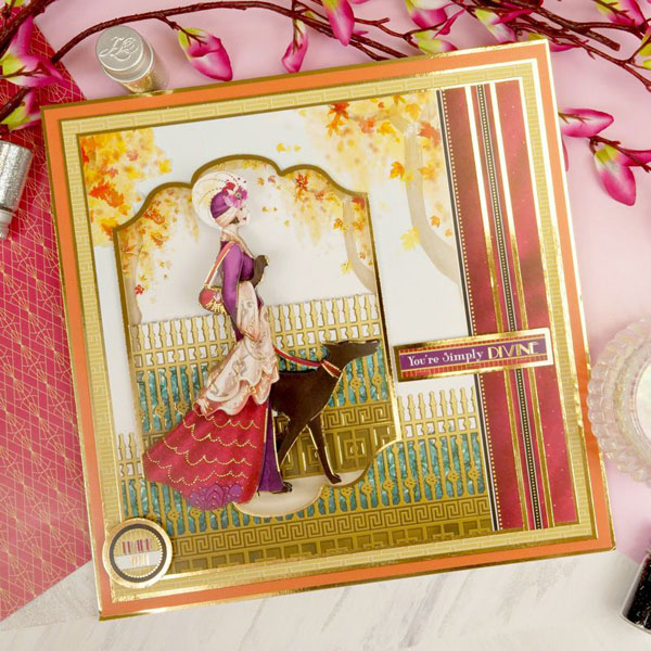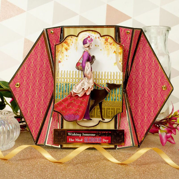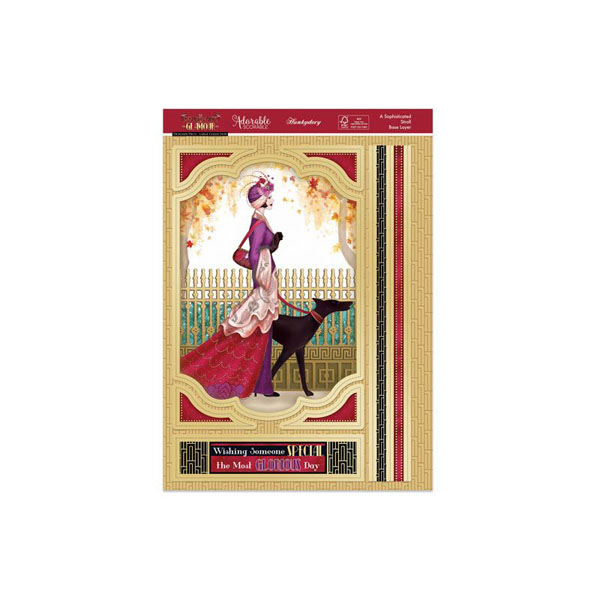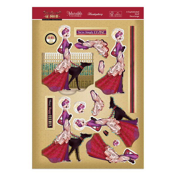 Taken from "The Golden Age of Glamour" collection, this is a deco-large (large decoupage) set. The base layer of the decoupage item is a staggering 14.3cm x 10.2cm. The rest of the A5 base-layer sheet is filled with extra elements (such as a sentiment, corners, and border strips). The A4 decoupage sheet has all the layers to build up onto your base layer. The sheet of printed cardstock coordinates beautifully with the rest of the set.