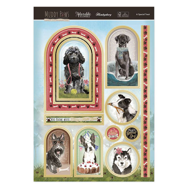 This topper set is part of the Muddy Paws Collection; featuring four-legged furry friends in playful scenes. Featuring a host of wonderful painterly artwork of various dog breeds.