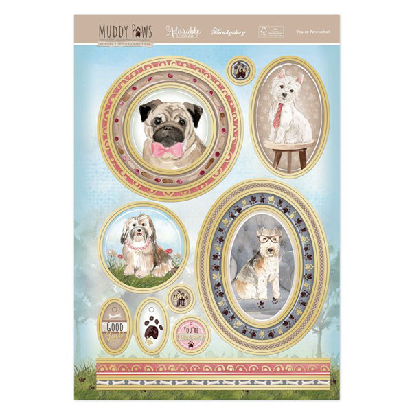 This topper set is part of the Muddy Paws Collection; featuring four-legged furry friends in playful scenes. Featuring a host of wonderful painterly artwork of various dog breeds.
