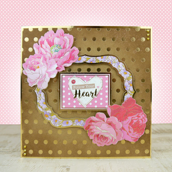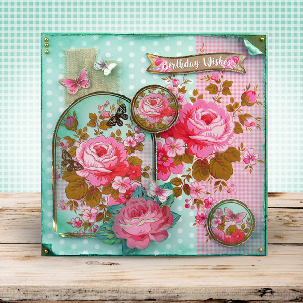 The floral imagery throughout the collection features a range of colours and styles set on stunning backgrounds, with pretty coordinating elements and patterns, surrounded with beautiful butterflies and birds. It contains contemporary artwork with pastel tones and foiled kraft card, with which crafters can create pretty, rustic cards.