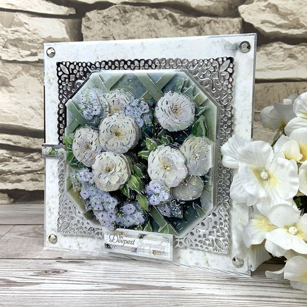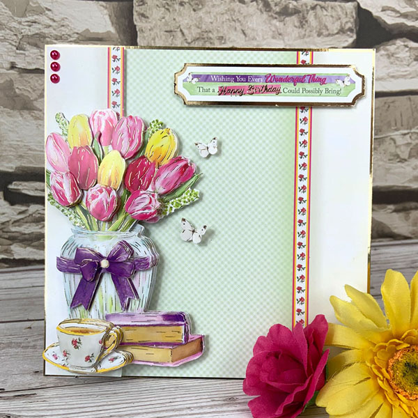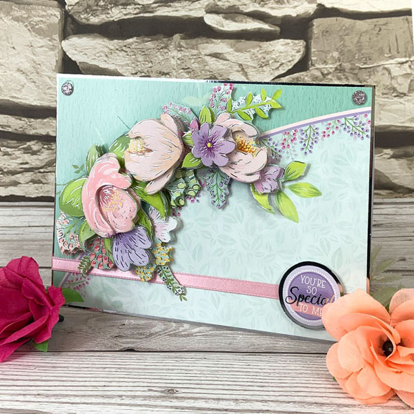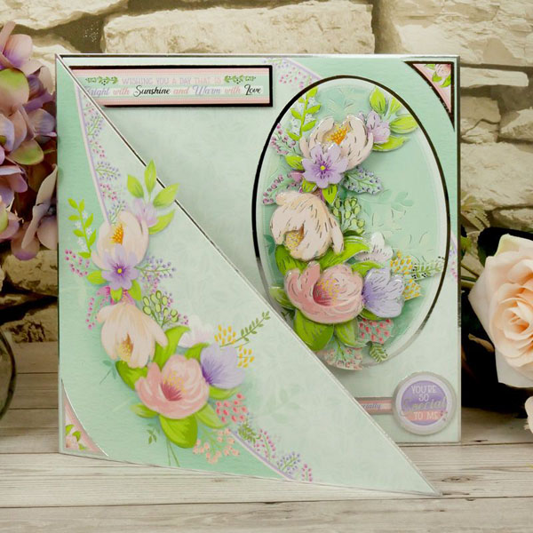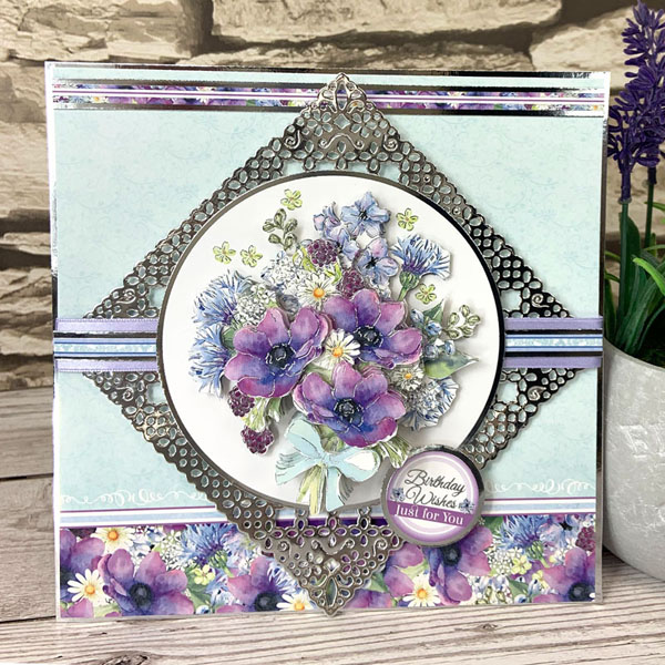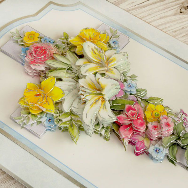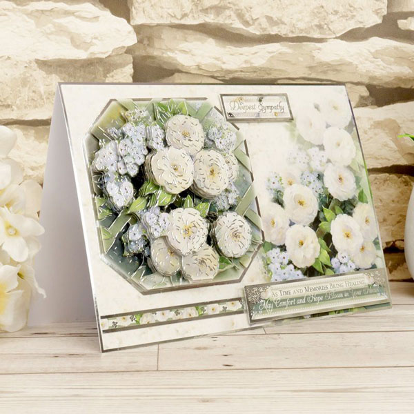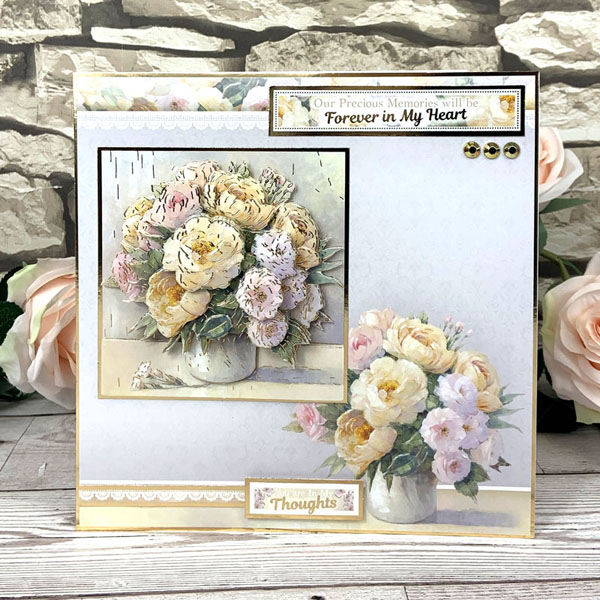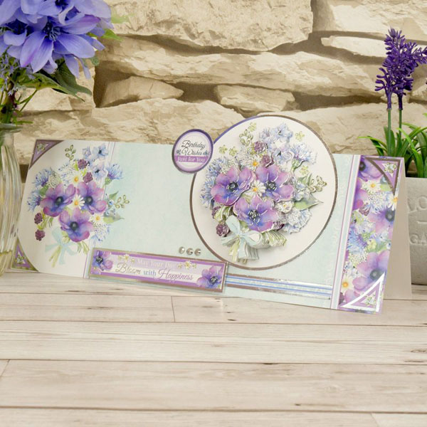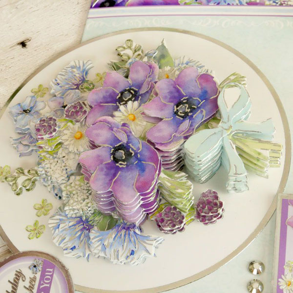 The A5 base-layer sheet contains your decoupage base-layer topper. The rest of the A5 sheet is filled with extra elements (such as sentiments, and border strips). The A4 deco-large sheet has all the decoupage layers to build up onto your base layer. The sheet of printed cardstock coordinates beautifully with the rest of the set.
