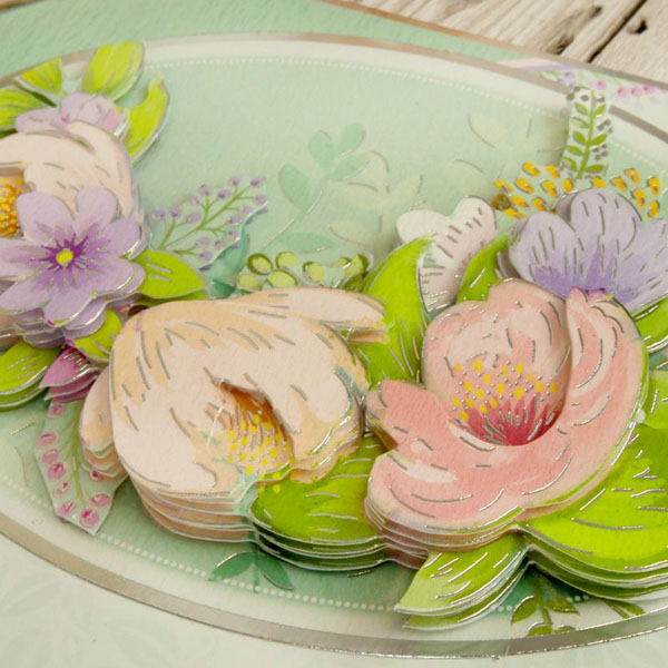 All pieces on the deco-large sheets and base-layer sheets contain foil printed elements in either silver or gold. The strips, frames and sentiments also have foil printed borders. The foil printed finish to these pieces really do create stand-out effects, and finish off your toppers beautifully.