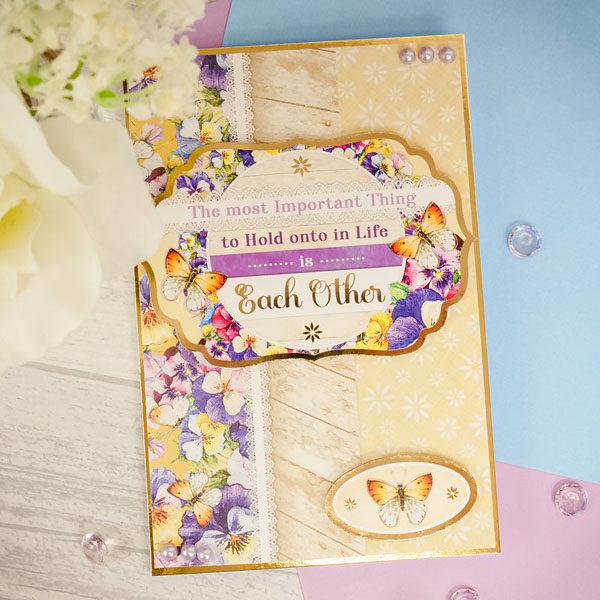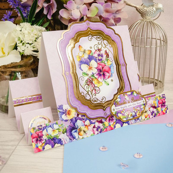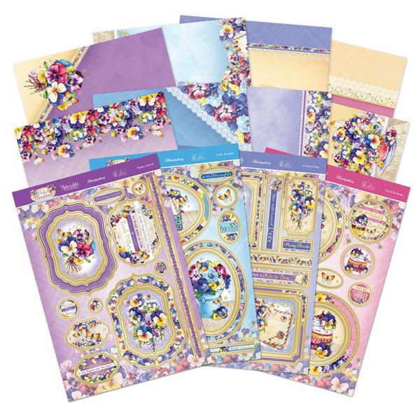 Brighten up your cardmaking with the Perfect Pansies topper collection. These bright and beautiful blooms have arrived and they're elegantly accented with rich gold foil and pretty swirls. This gorgeous collection features vibrant displays of pansies and butterflies throughout, along with cupcakes good enough to eat, vintage keys, lace, notes, postcards and more!