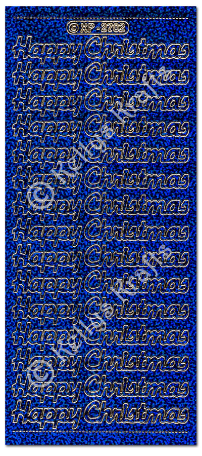 Happy Christmas, Holographic Dark Blue Peel Off Stickers (1 sheet)
