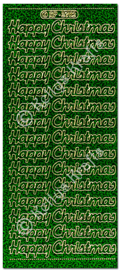 Happy Christmas, Holographic Green Peel Off Stickers (1 sheet)
