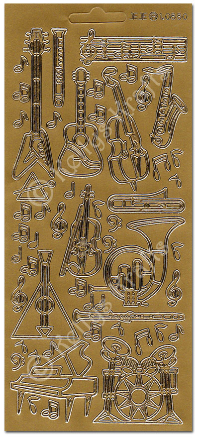 (image for) Musical Instruments & Music Notes, Gold Peel Off Stickers (1 sheet)