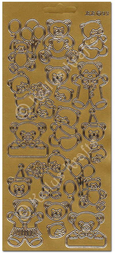 Teddy Bears, Gold Peel Off Stickers (1 sheet)