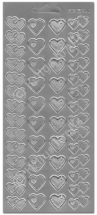 Two-Tone Hearts, Silver Peel Off Stickers (1 sheet)