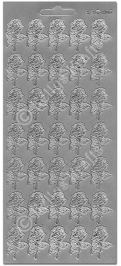 Roses Flowers, Silver Peel Off Stickers (1 sheet)