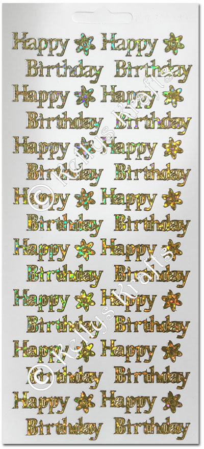 Happy Birthday, Gold Holograph Peel Off Stickers (1 sheet)