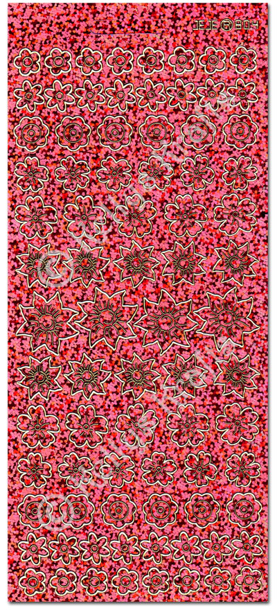 (image for) Various Flower Heads, Pink Holograph Peel Off Stickers (1 sheet)
