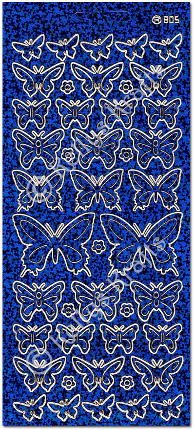 Butterflies, Dark Blue Holograph Peel Off Stickers (1 sheet)
