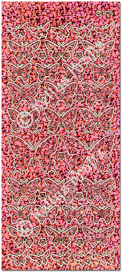 Butterflies, Pink Holograph Peel Off Stickers (1 sheet)