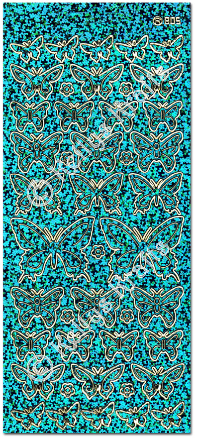 Butterflies, Light Blue Holograph Peel Off Stickers (1 sheet)