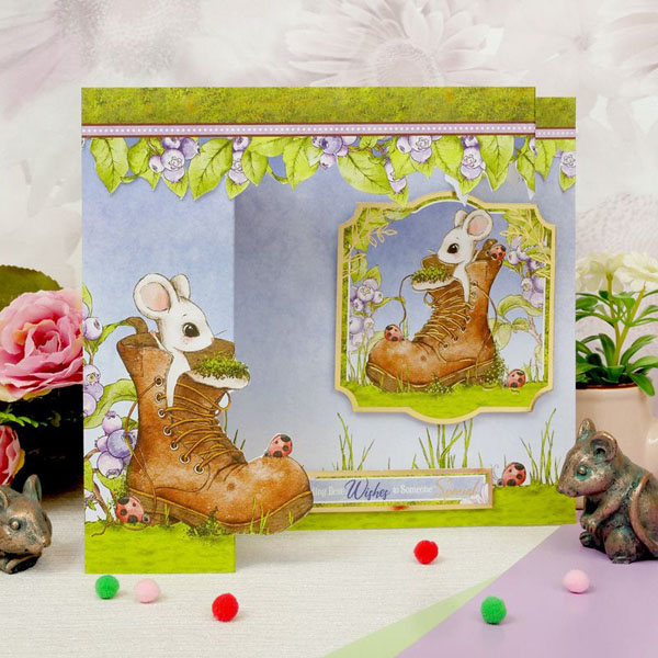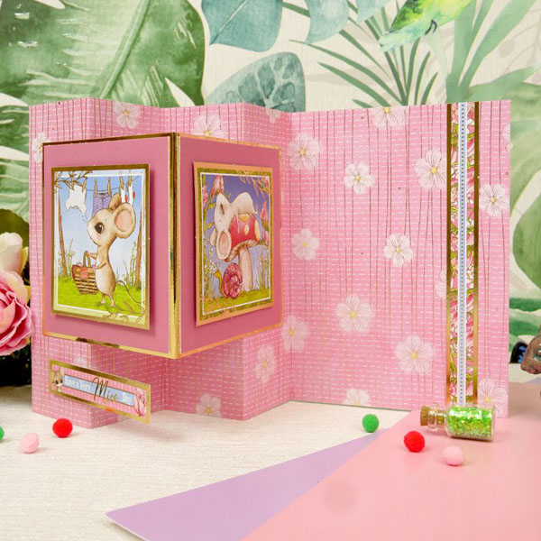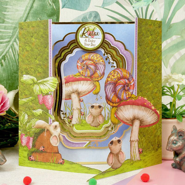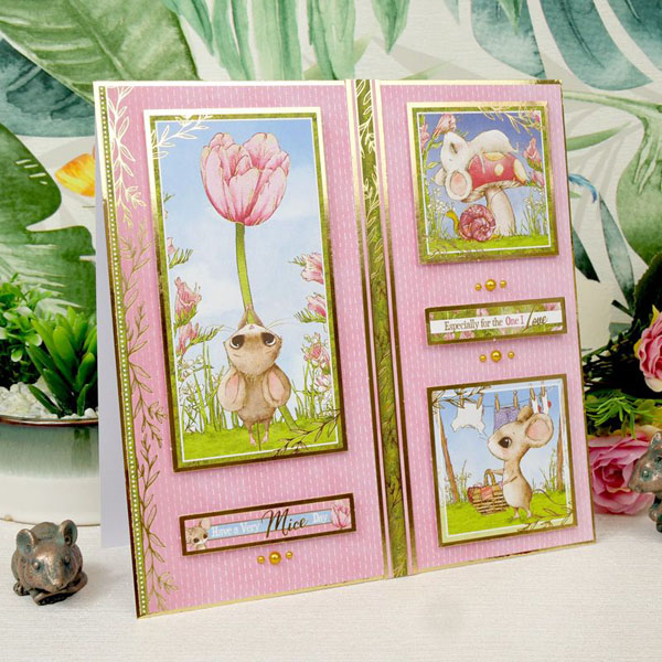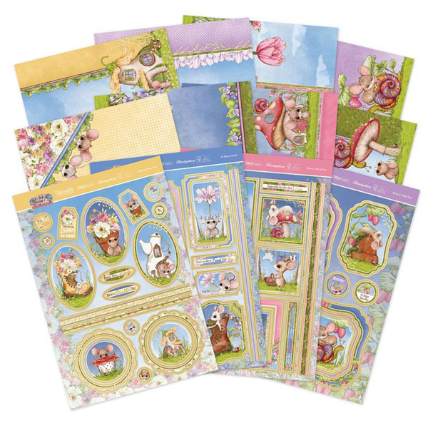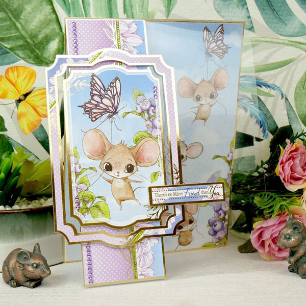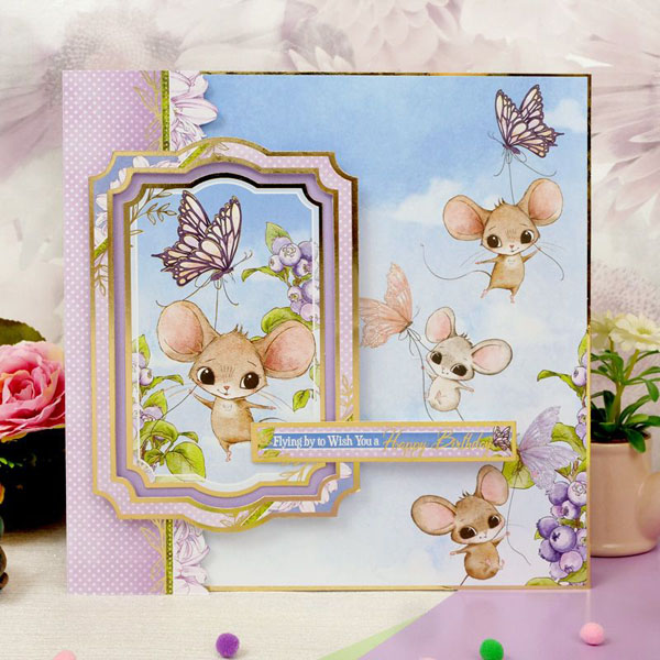 A family of field mice with enormous ears make up a variety of playful scenes in this adorable collection. Spot them mousing around in their teapot houses, dozing on top of toadstools, and playing with their meadow friends in the sunshine. Beautiful gleaming gold foil complements the candy colours of blush pink, sunshine yellow, sky blue and lovely lilac to make this a collection perfect for summertime crafting. To tie this collection together nice and neatly there are beautiful berries, butterflies, ladybirds and floral elements running throughout the toppers and matching cardstock. There’s also a lovely selection of sentiments, border strips, and tags to play with.