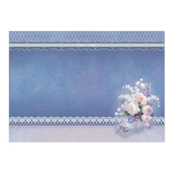 This Beautiful Blooms set features delicately hand painted florals with exquisite white lace accents and borders throughout, enhanced by stunning silver foiled flourishes and accents.